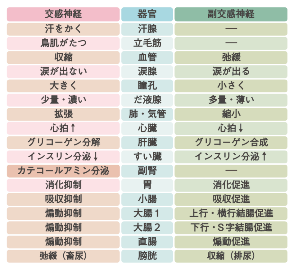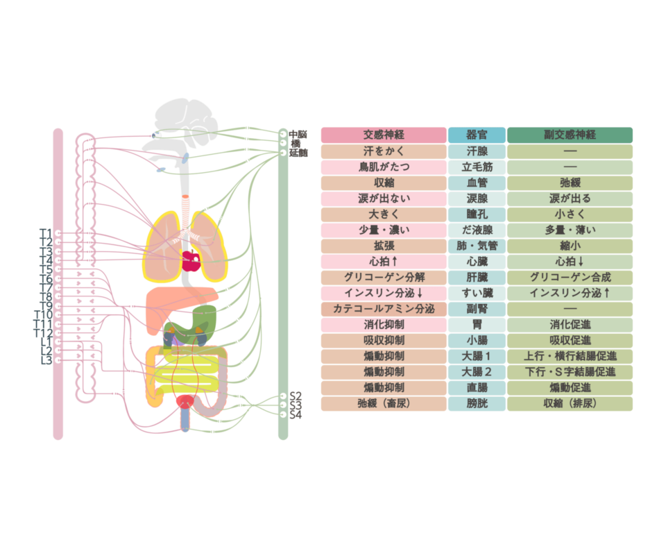 自律神経は、特に交感神経と副交感神経の2つの神経がバランスを取ることで成り立ちます。